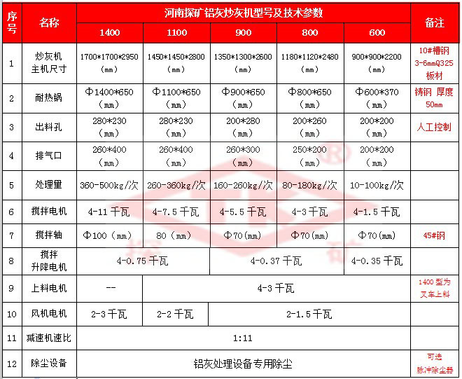 1400型鋁灰炒灰機主要特點: